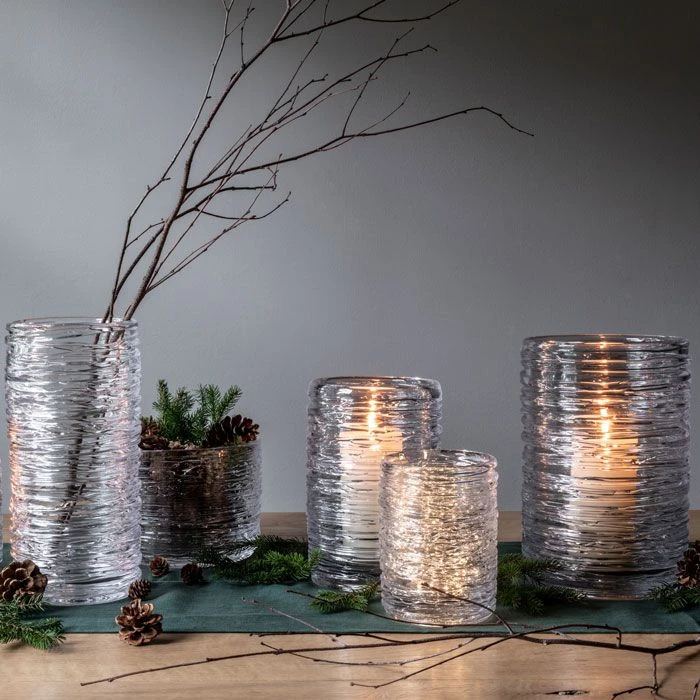 Care: Clean with glass cleaner and a soft cloth. Extinguish candles before the flame reaches the base. Do not expose glass to extreme heat changes, such as placing in the freezer. A shock in temperature can cause fractures.