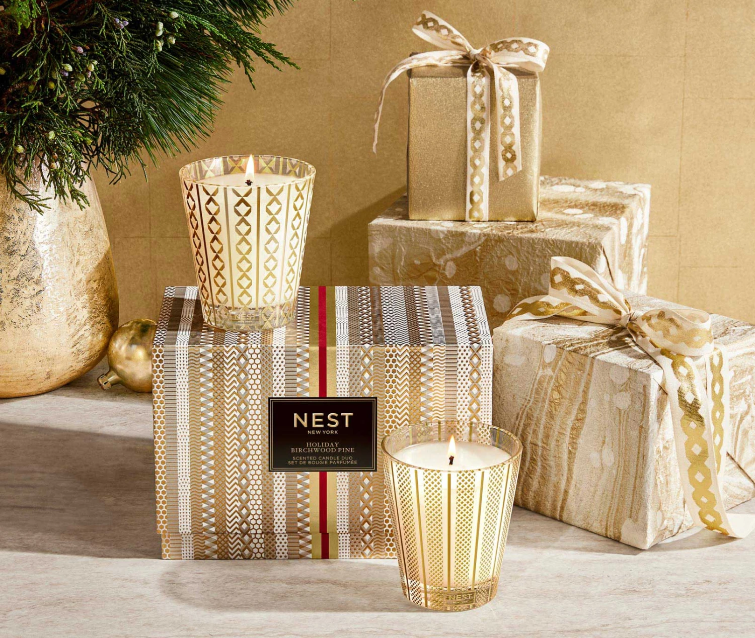 This festive Classic Candle set fills your home with our bestselling scents of the season, Birchwood Pine and Holiday.