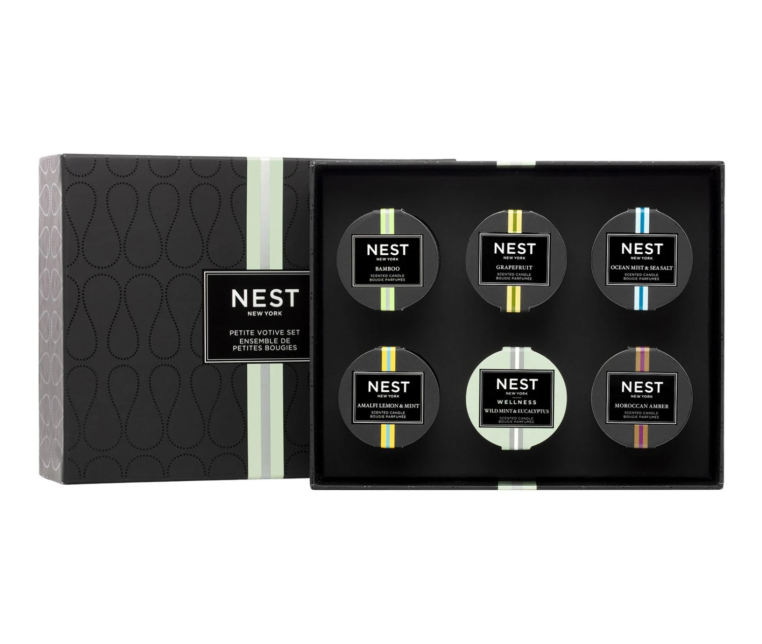 Discover our bestsellers with this beautifully packaged set featuring six (6) mini votives of our most beloved scents including Bamboo, Grapefruit, Moroccan Amber, Ocean Mist & Sea Salt, Amalfi Lemon & Mint, and Wild Mint & Eucalyptus.