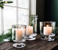 Care: Clean with glass cleaner and a soft cloth. Extinguish candles before the flame reaches the base. Do not expose glass to extreme heat changes, such as placing in the freezer. A shock in temperature can cause fractures.