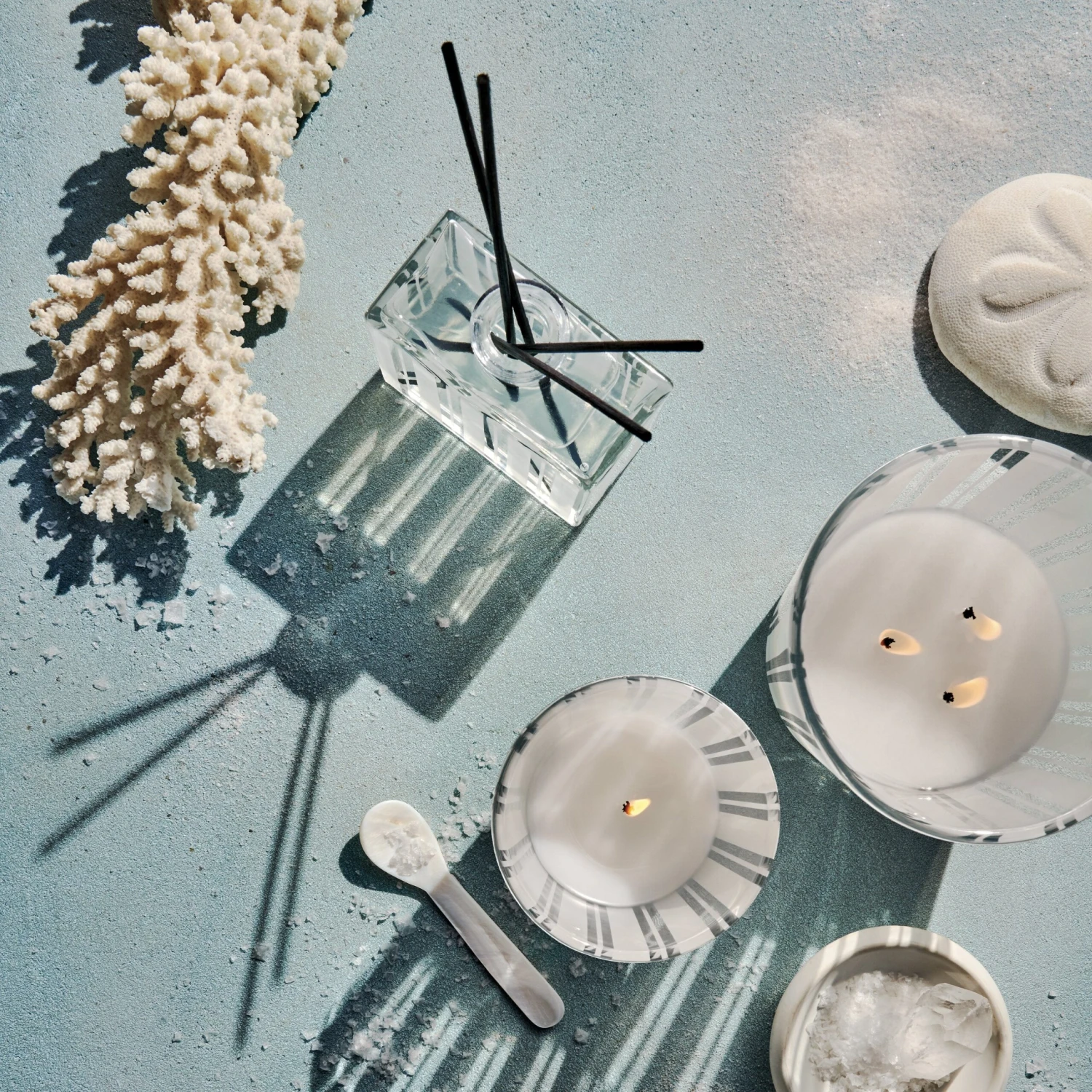 - Escape with fresh marine scents of refreshing essence of gentle ocean mist, hints of sea salt, white tea, and coconut