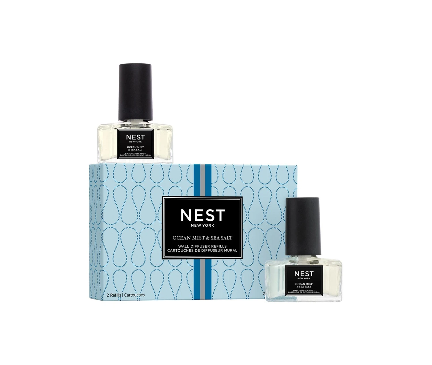 Scent your world with this exquisitely fragranced Wall Diffuser Refill Duo featuring the refreshing essence of a gentle ocean mist with hints of sea salt, white tea, and coconut for a seaside escape.