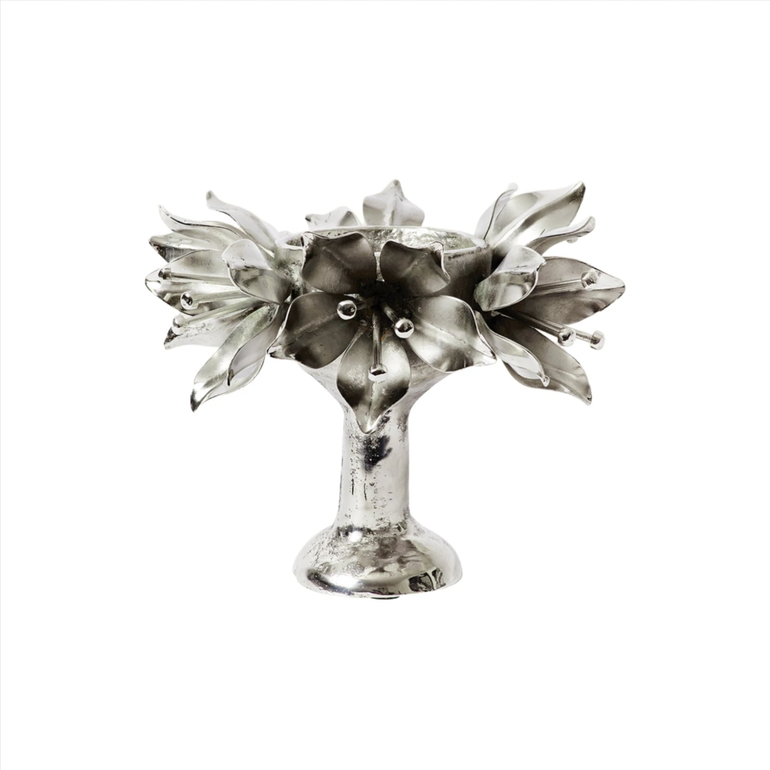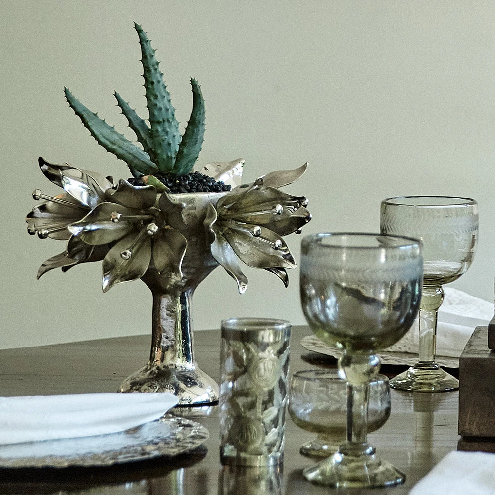 - Wax cast iron is plated with German nickel on this oversized copa bursting with passion flowers along the rim