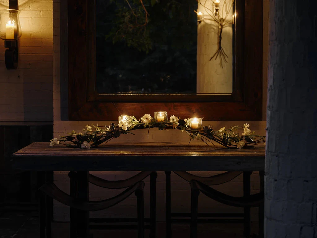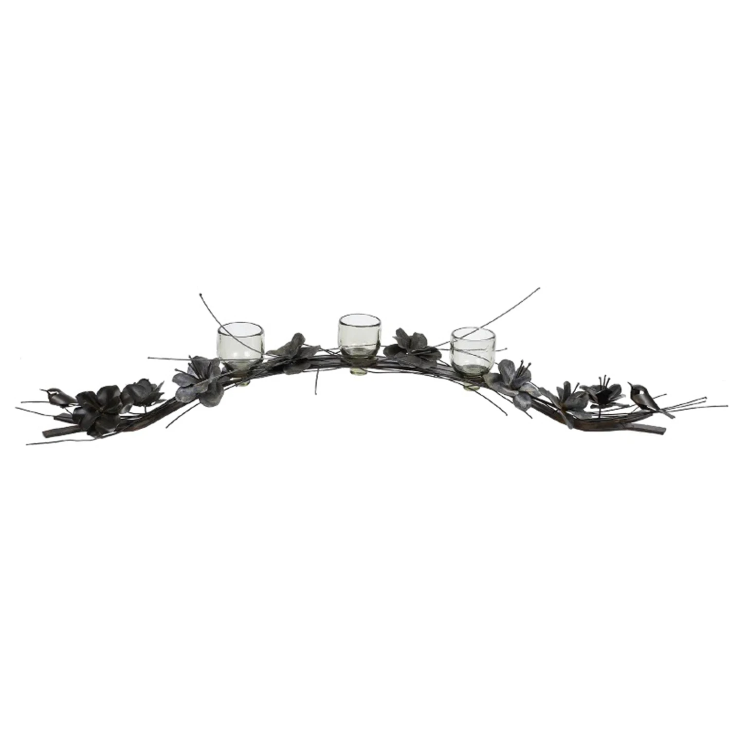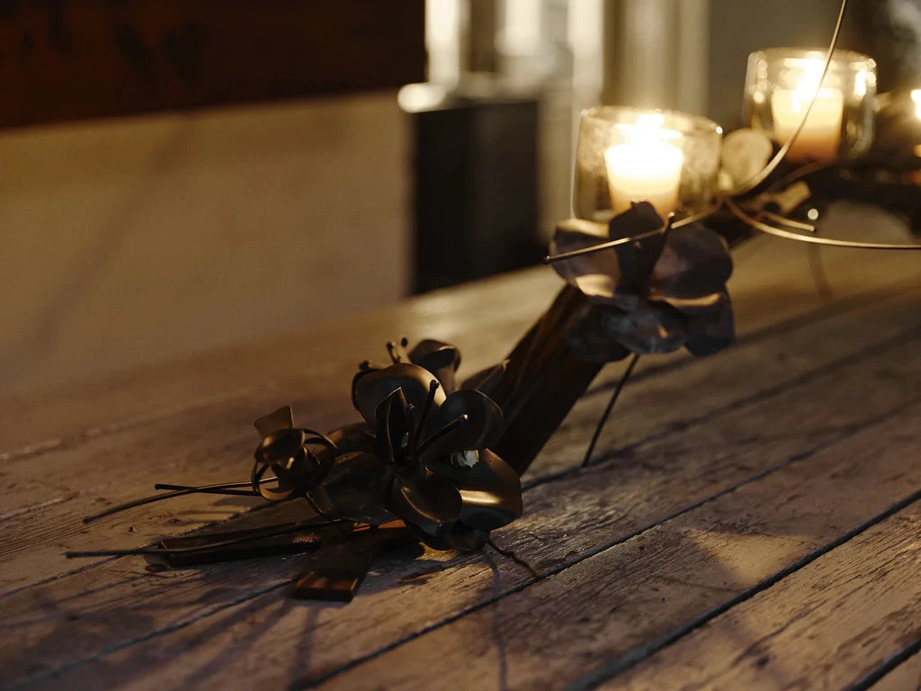 - Arc of forged iron roses with three mouth blown glass vessels for candles, flowers, etc