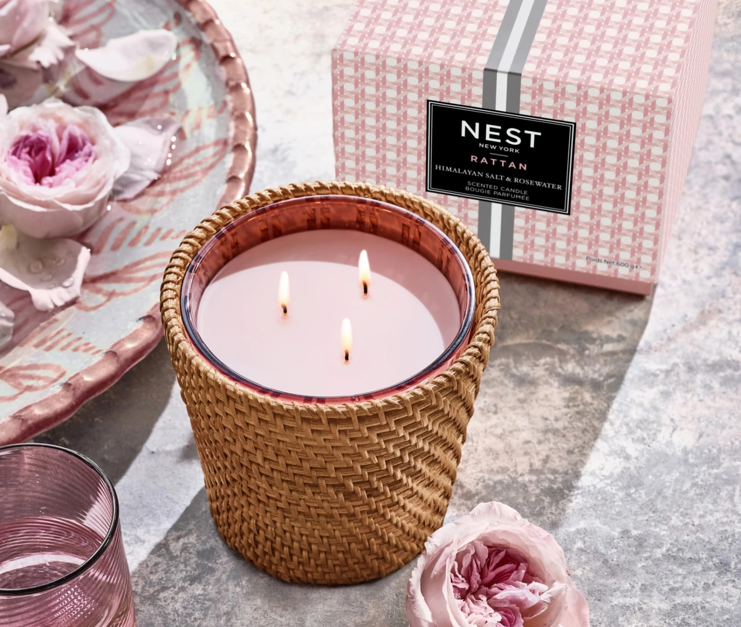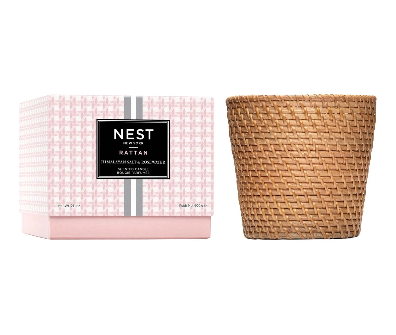 Ease your mind and soothe your spirit with this limited-edition Himalayan Salt & Rosewater 3-Wick Candle featuring a removable rattan sleeve.