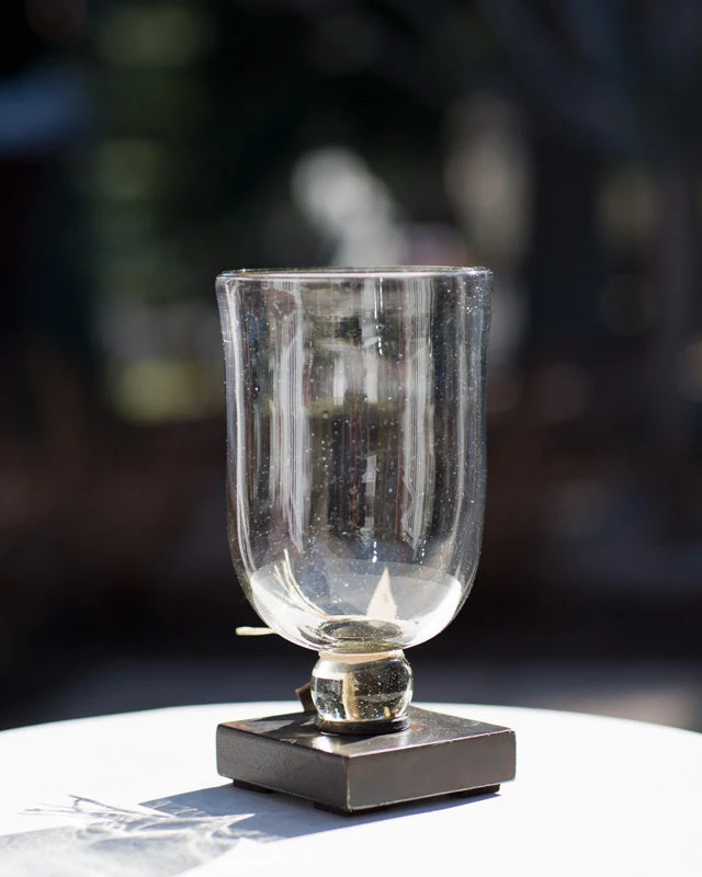 Care: Hand wash glass vessel. Clean iron with soft dry cloth.